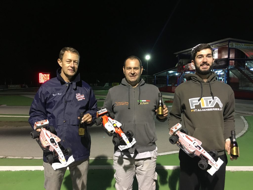 Per il podio è una lotta a tre con Nicosanti (Mercedes), Fonti (McLaren-Marlboro) e Tancioni (Force India) che chiudono nell’ordine, i primi due si sono scambiati le posizioni almeno 5/6 volte sfruttando anche i pitstop e solo all’ultimo giro riesce a spuntarla il pilota Mercedes che conclude facendo segnare anche il giro veloce in gara!